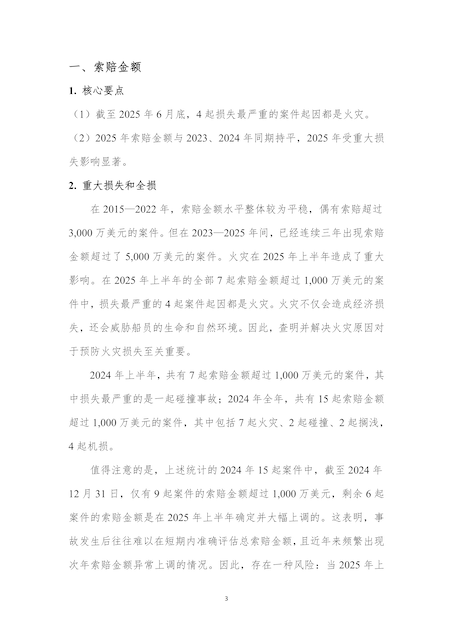 为助力行业精准把握船舶保险市场动态,提升风险应对能力,协会近日完成北欧船舶保险协会Cefor2025年中期船舶保险报告的翻译工作,现分期发布供行业同仁学习参考,本期为第一期,聚焦第一章“索赔金额”主题。