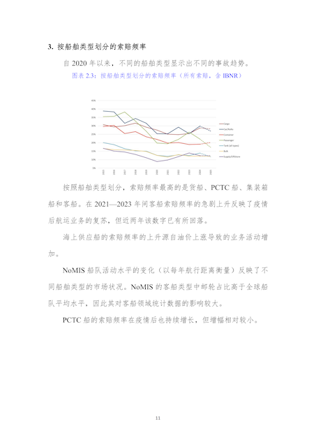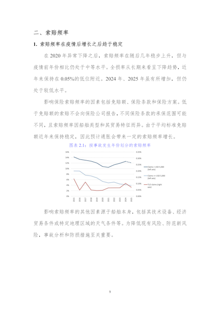 为助力行业精准把握船舶保险市场动态,提升风险应对能力,协会近日完成北欧船舶保险协会Cefor2025年中期船舶保险报告的翻译工作,现分期发布供行业同仁学习参考,本期为第二期,聚焦第二章“索赔频率”主题。